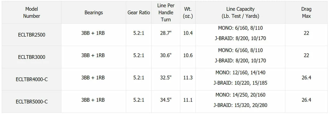 The EMCAST Bite Nā Run feature allows line to pay off the reel when a gamefish takes a live or natural bait. Once line is paying off the reel, the refined Auto Clutch will put the reel in gear allowing a solid hook set. It is much more controlled than simply opening up the bail, the traditional method used when fishing natural baits with spinning reels. The reel sizes vary from a 2500 Series to a 5000 Series making the versatile reel line suitable for many different applications in many different fisheries. The reel designs are in the LT Concept of light yet tough. The Carbon Light Body is substantially lighter yet just as strong as traditional materials. To further the concept, the Air Rotor is also lighter yet just as strong. A slick Machined Aluminum Handle is powerful yet comfortable to the hand. When a gamefish is taking a bait offering and the reel is put in gear, the ATD or Advanced Tournament Drag System, utilizing a proprietary grease, allows the smooth payoff of line no matter how long the run. A 5.2 to 1 Gear Ratio shades the reel toward pulling power. If you are looking for an exciting new reel tailored for the live and natural bait fisherman, look to the new EMCAST BR LT to put your presentation at the take.